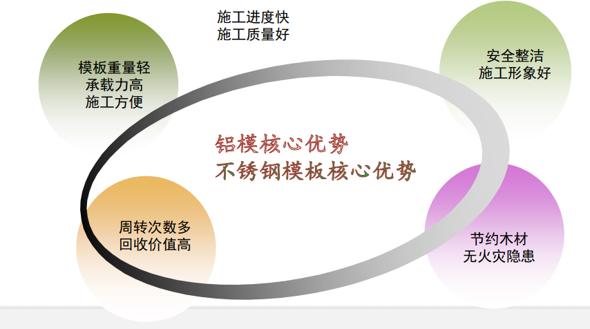 1.整體澆筑、一次成型, 縮短工期(標準工期4-5天);保證建筑物的整體強度,周轉使用壽命可達300次以上。