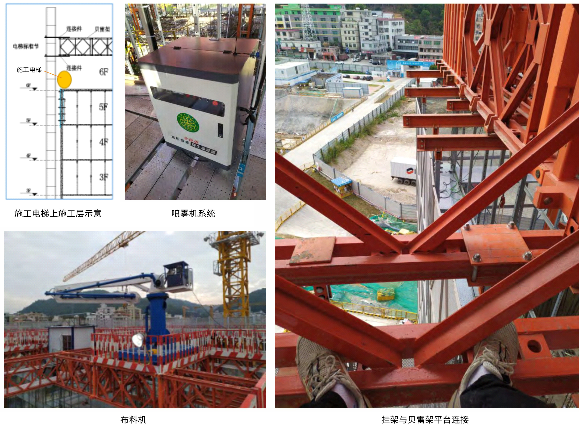 · 設備施工集成功能; · 安全高效頂升功能; · 混凝土高效布料機功能; · 混凝土噴淋養(yǎng)護功能; · 全天候施工保障功能; · 施工電梯上施工層。 |